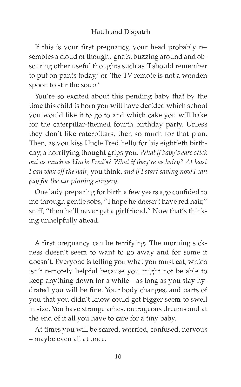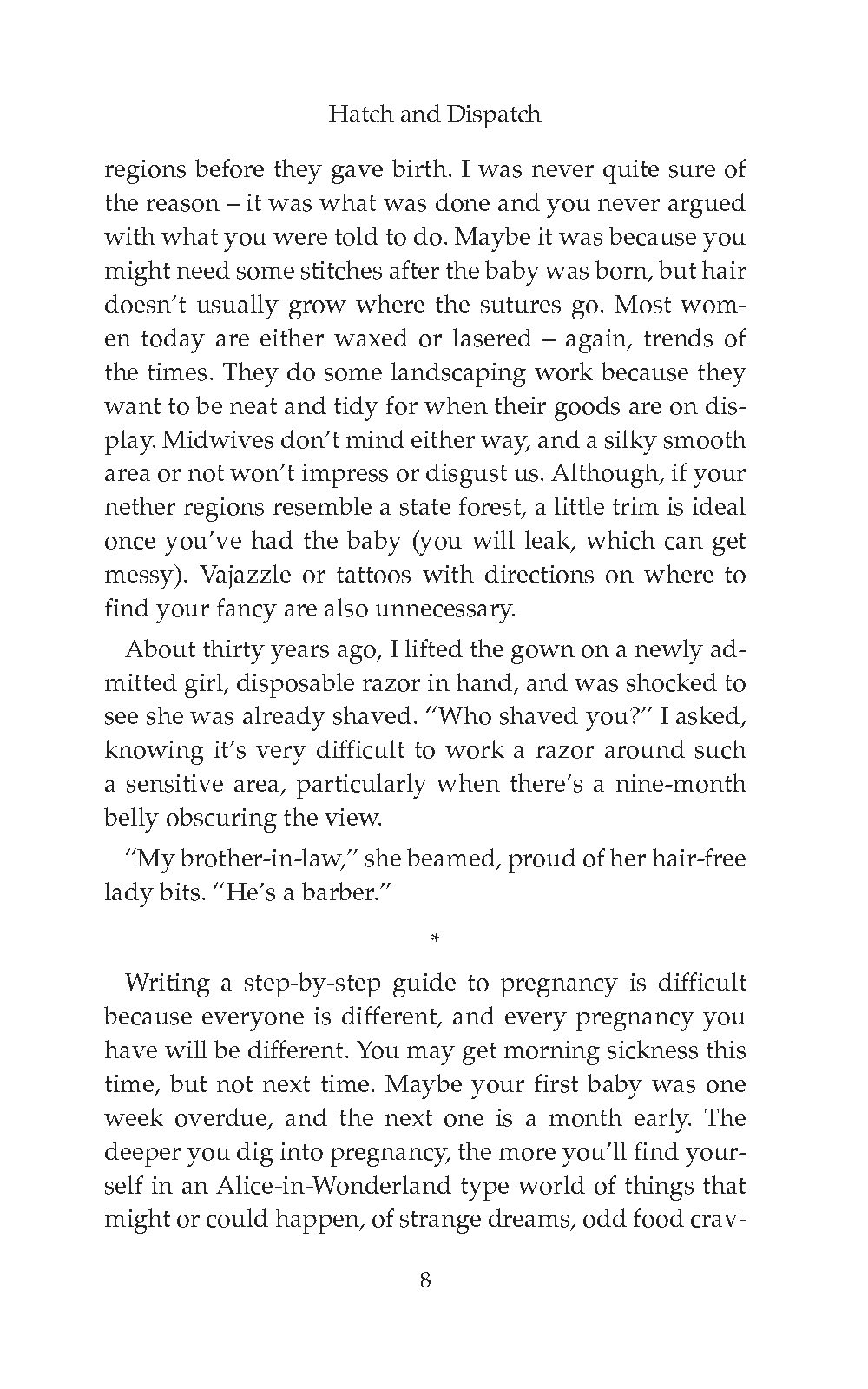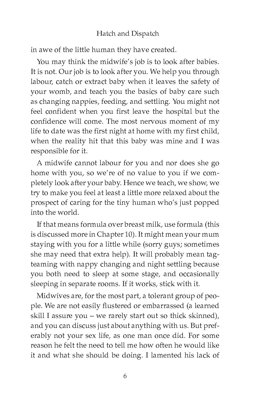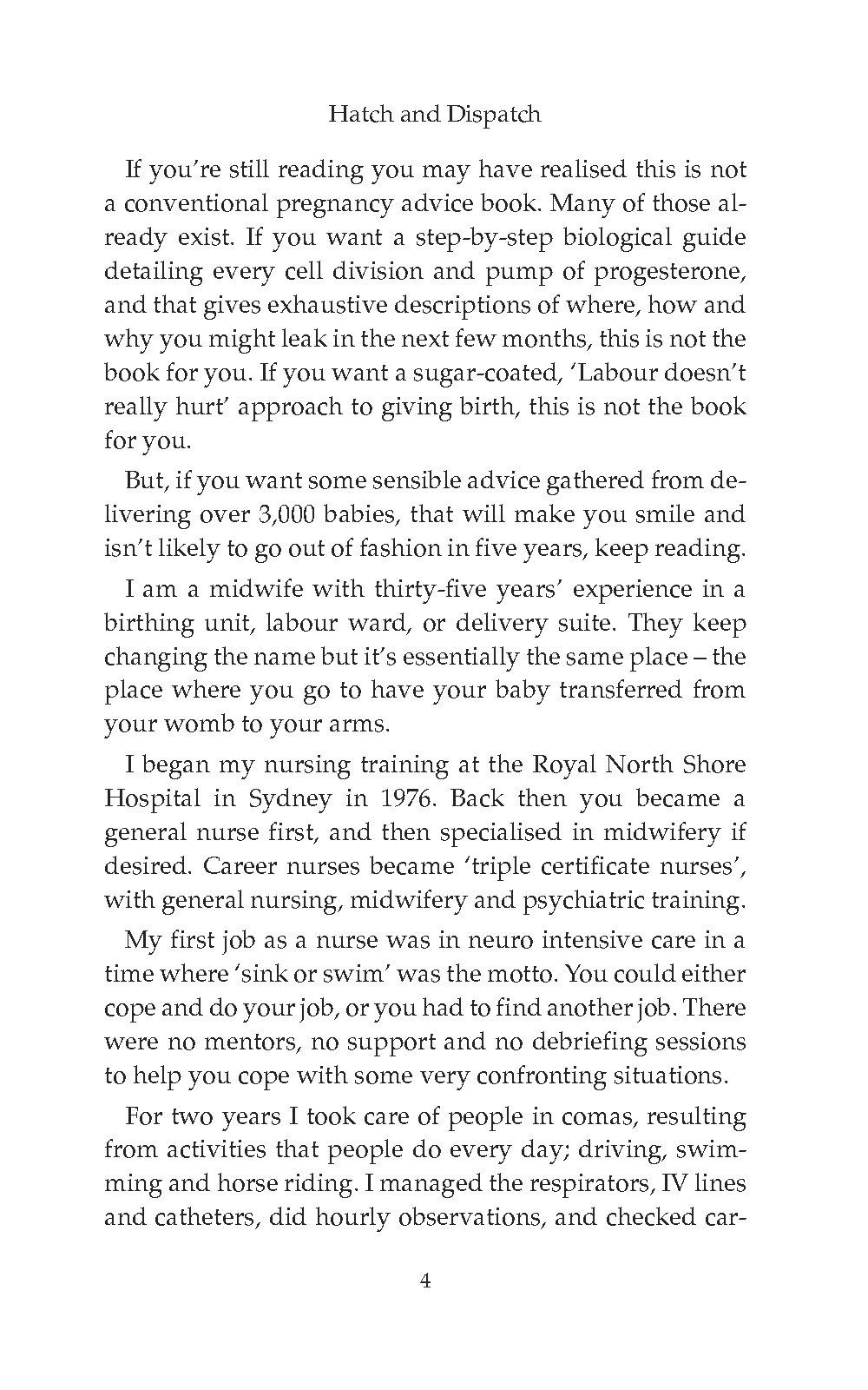 “Hatch and Dispatch is a compilation of the advice I give to expecting mums almost every day, whether it be their first of fifth babies. I use the stories from my career to show you that every woman has the same concerns, the same questions, and makes essentially the same noise when pushing a baby out.