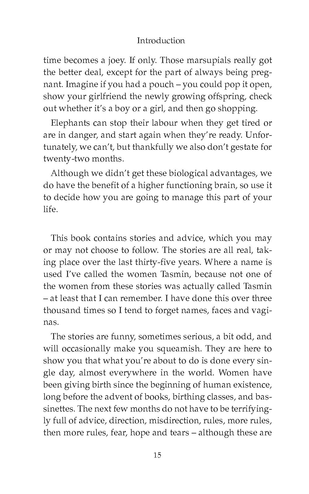 “Read about the hallucinations some women experience when using nitrous, what happens to tattoos and piercings during pregnancy (clue: dolphins become whales, Bambi becomes a moose), and about the partner who wanted to attend ante-natal classes even though his baby was already born. Bless his cotton socks – he wanted to leave his wife and baby at home and come to class to learn about nappy changing and settling (on the job training was not for him).