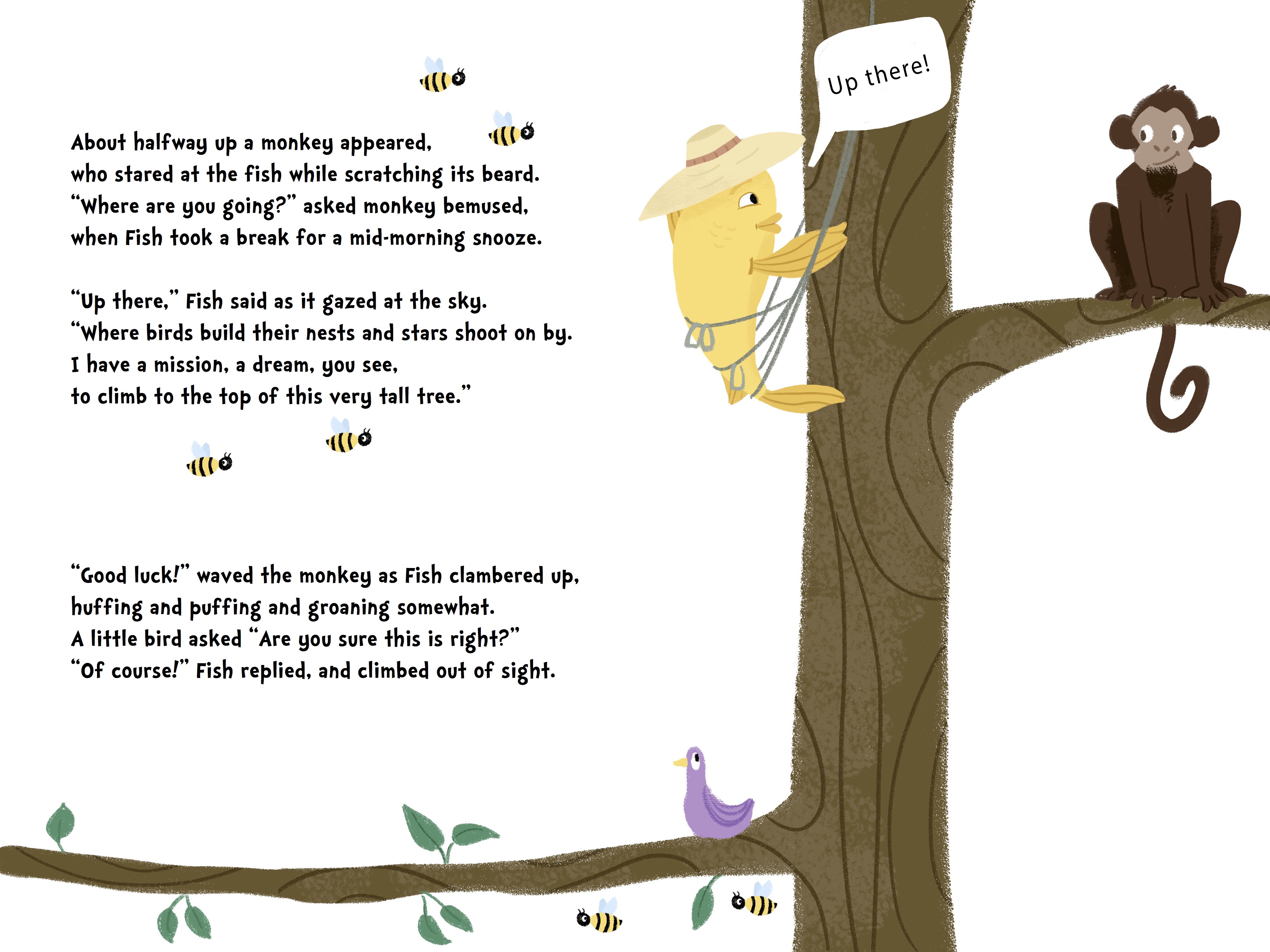 Maybe you’ll keep climbing, maybe you’ll stop, maybe you’ll descend, or maybe not. Whatever you choose is right for you, for you are a clever and special Fish too.